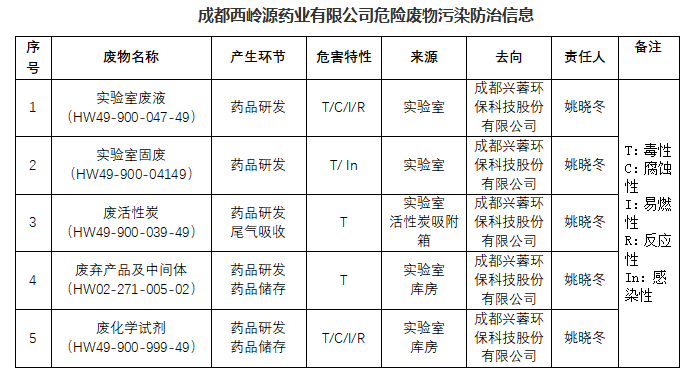 1、危险废物:公司各部门产生的危险废物收集后放入危废暂存间,并将数量登记在台账及四川省固体废物环境管理信息系统。危废暂存间的危险废物集合到一定数量后再交给有处置资质的单位进行转运和处置。